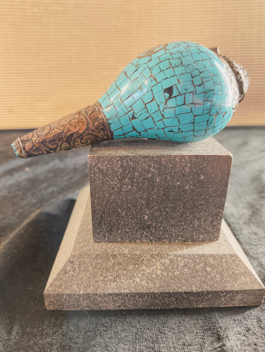 Conchiglia Tromba rituale tibetana rivestita con metallo e pietre