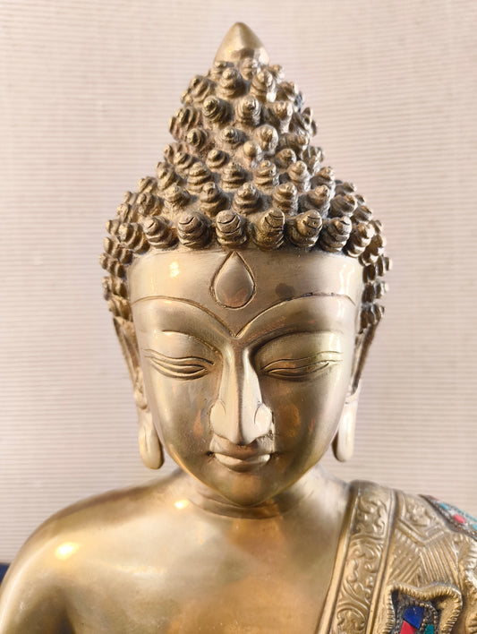 Buddha seduto in dhyanasana con ciotola per raccolta offerte - Ottone - Nepal - fine XX° sec.
