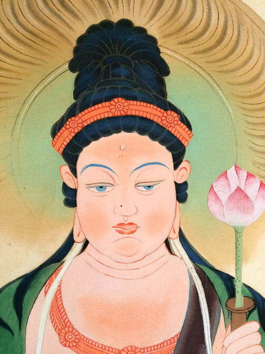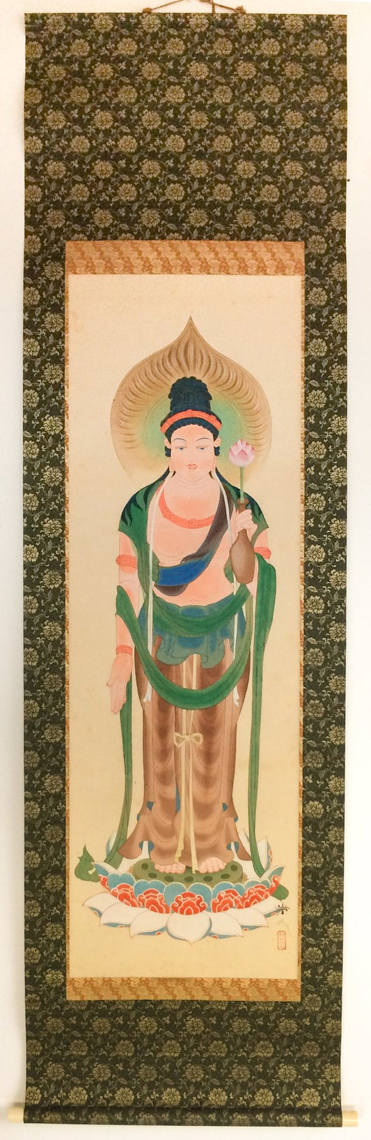 Grande peinture (Kakejiku) sur rouleau représentant le Bodhisattva Guanyin - Milieu du XXe siècle - Japon