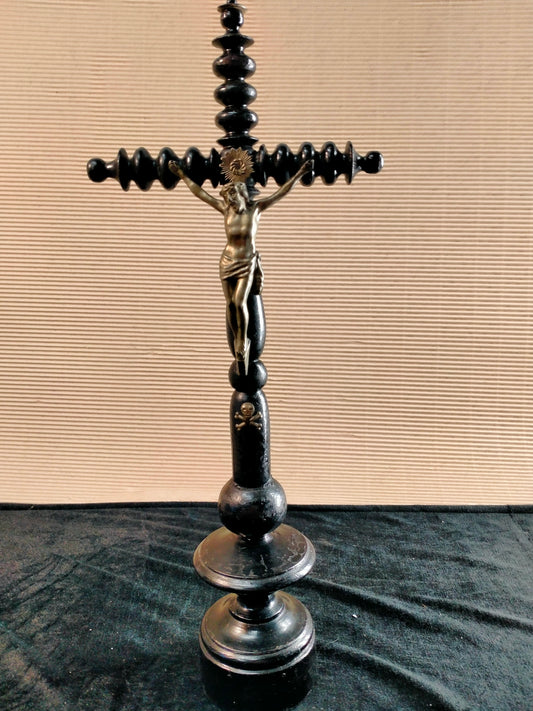 Crucifix en bois avec Christ en bronze et détails en métal moulé de style Napoléon III vers 1840/1870