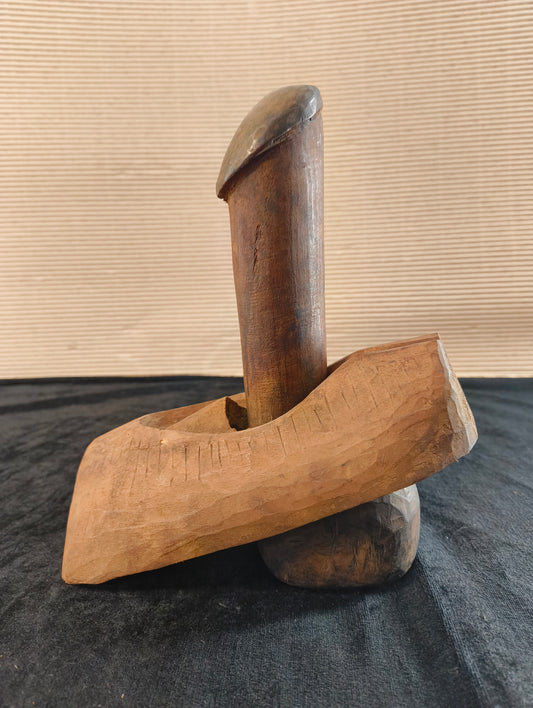 Lingam in legno e pelle di serpente rosa - Kerala - India - fine XX secolo