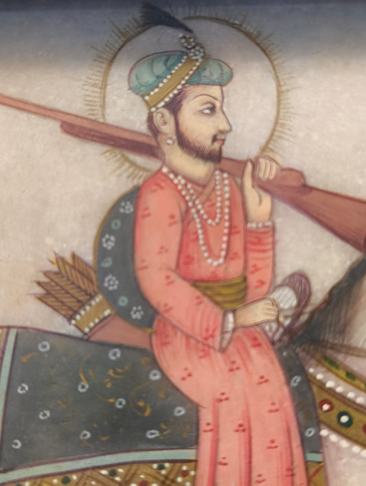 Peinture d'une scène romantique de la cour moghole, sur une plaque d'ivoire - Inde