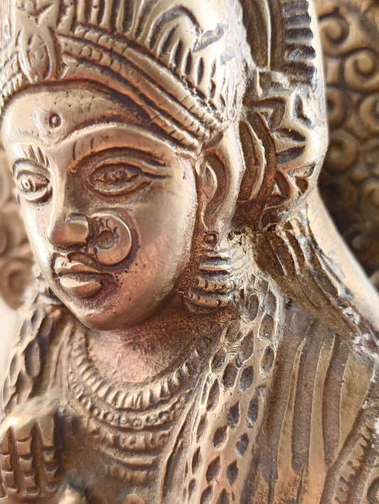 Durga au tigre - Statue - Bronze patiné - Inde - Seconde moitié du XXe siècle