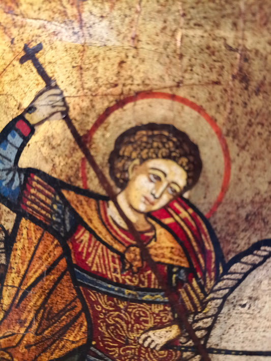 Icona in stile bizantino iconoclasta di San Giorgio ed il Drago - Polonia - metà XX° secolo