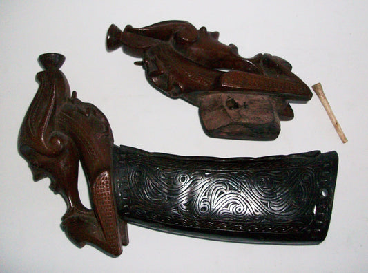 Grand récipient Naga Morsarang en corne et bois sculpté - Batak Toba - Sumatra du Nord - Indonésie