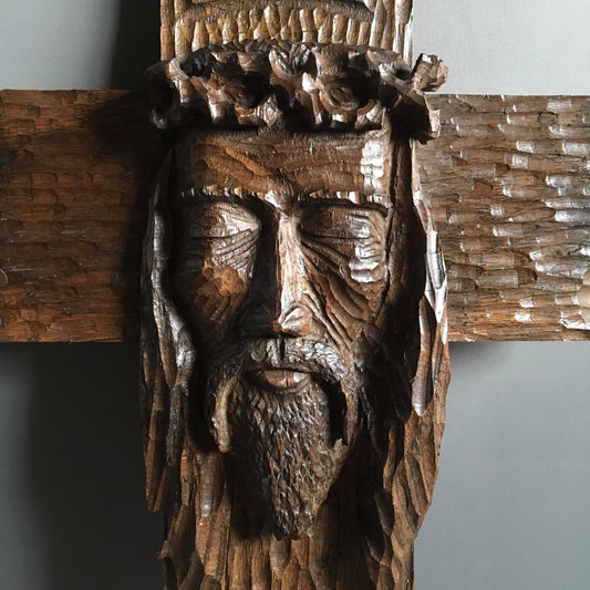 Grand Crucifix - Sculpture flamande en bois - 61 cm - Première moitié du XXe siècle