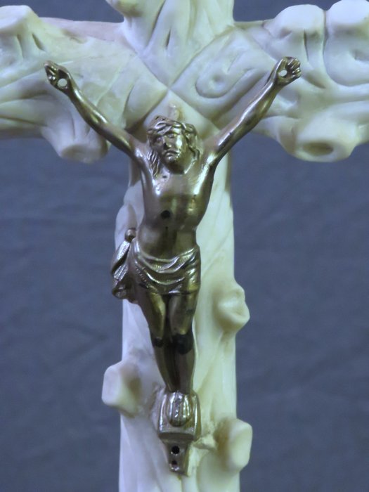 Crucifix d'autel en marbre blanc Crucifix en bronze - Déco - France