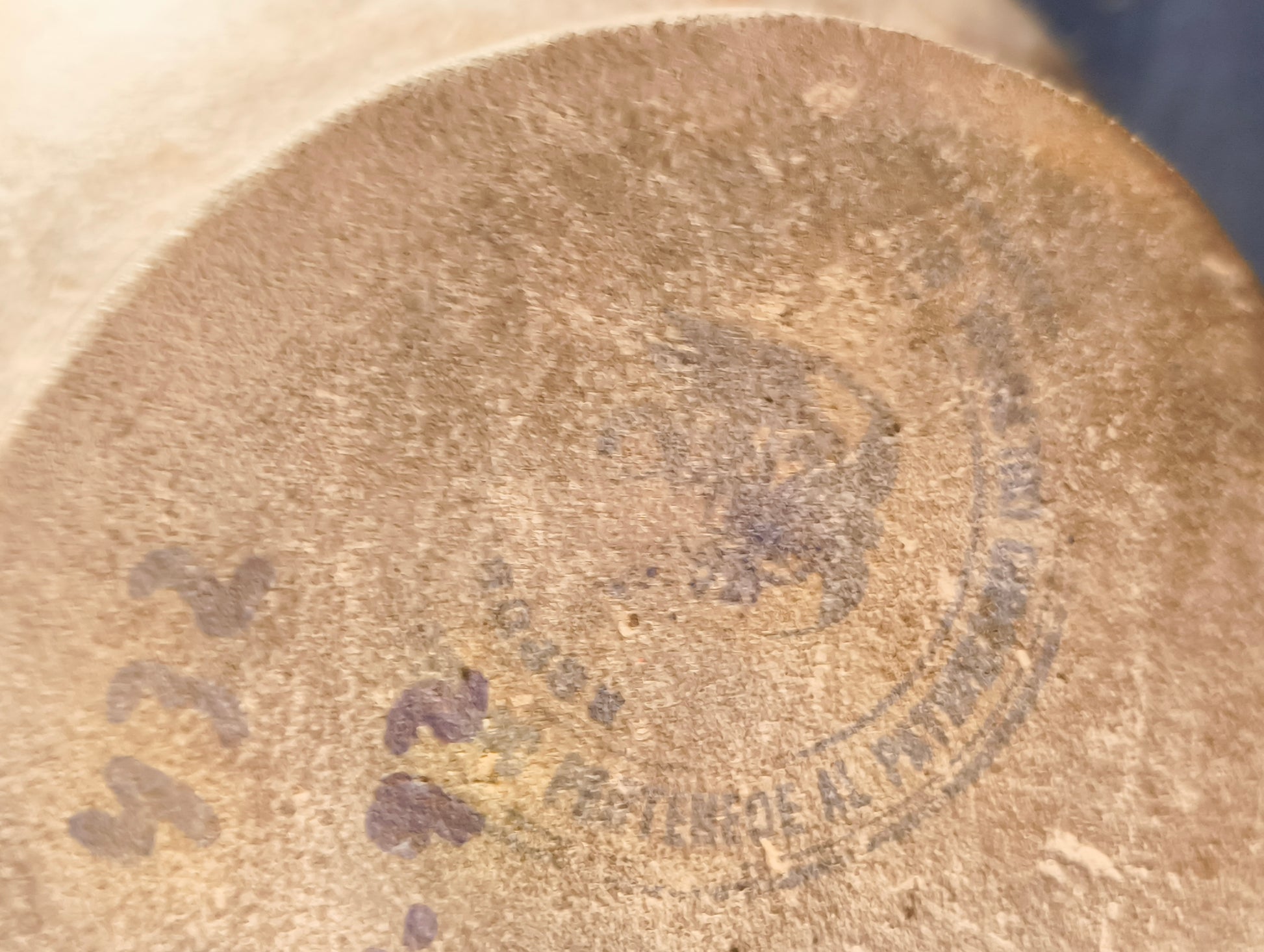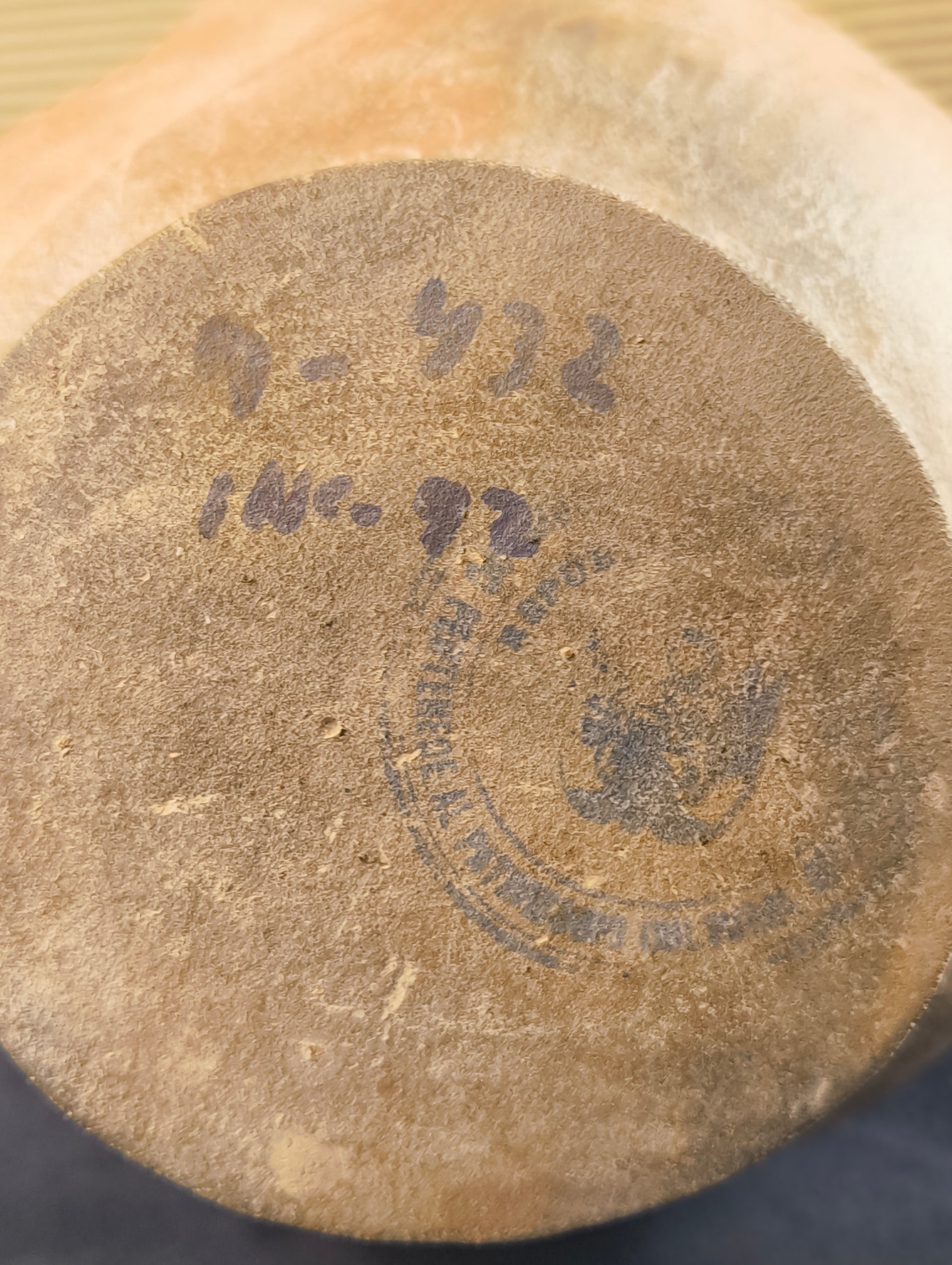 Sotto il vaso, oltre a dei numeri di serie di riconoscimento scritti da parte del Museo, un timbro ad inchiostro con, oltre al logo, la scritta REPLICA e Appartenente al patrimonio....