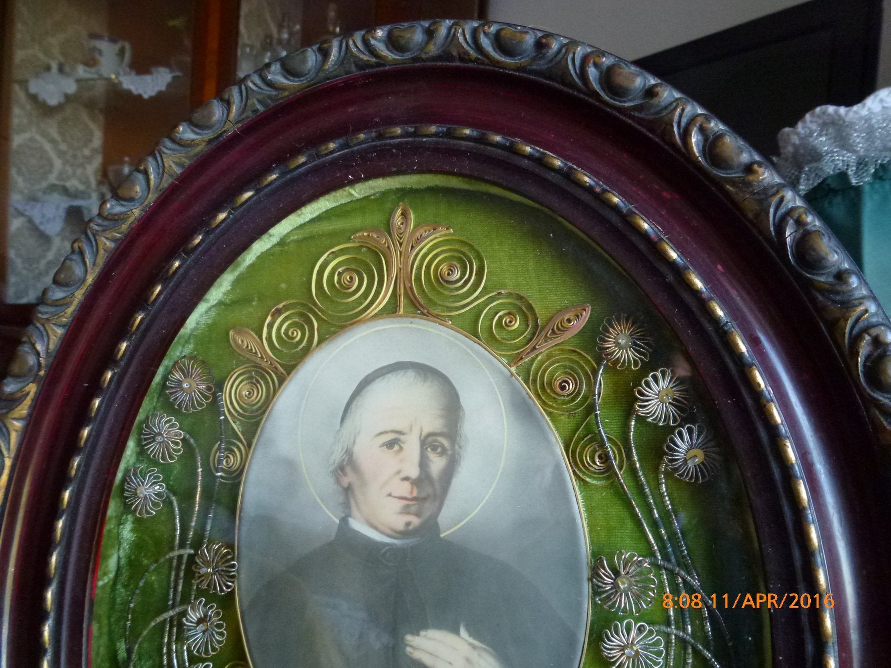 Raffigurazione di San Giuseppe Agostino Benedetto Cottolengo con reliquia (un pezzo di stoffa delle sue vesti).